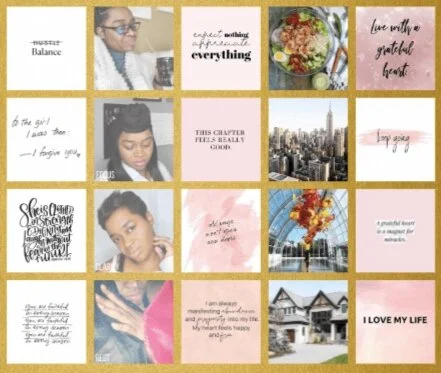 Once I started to peel back the layers, I realized I quickly knew my vision for 2020 because I spotted a recurring patter. From there I went straight to getting my images, which were a combination of Pinterest, my camera roll, and graphics I created using Over.