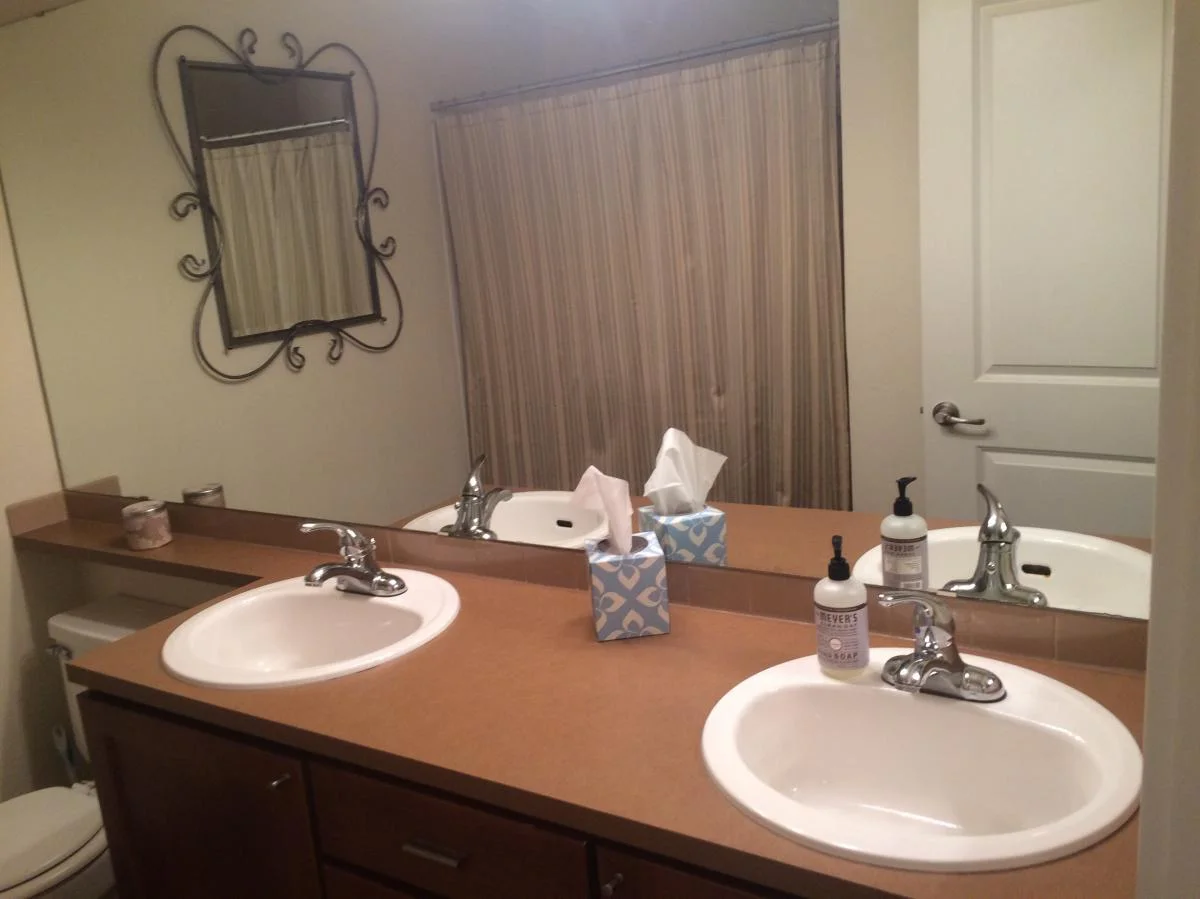 When we moved in, we were just immediately happy we had double sinks -- we didn't care too much what the bathroom was doing beyond that point, to be honest.