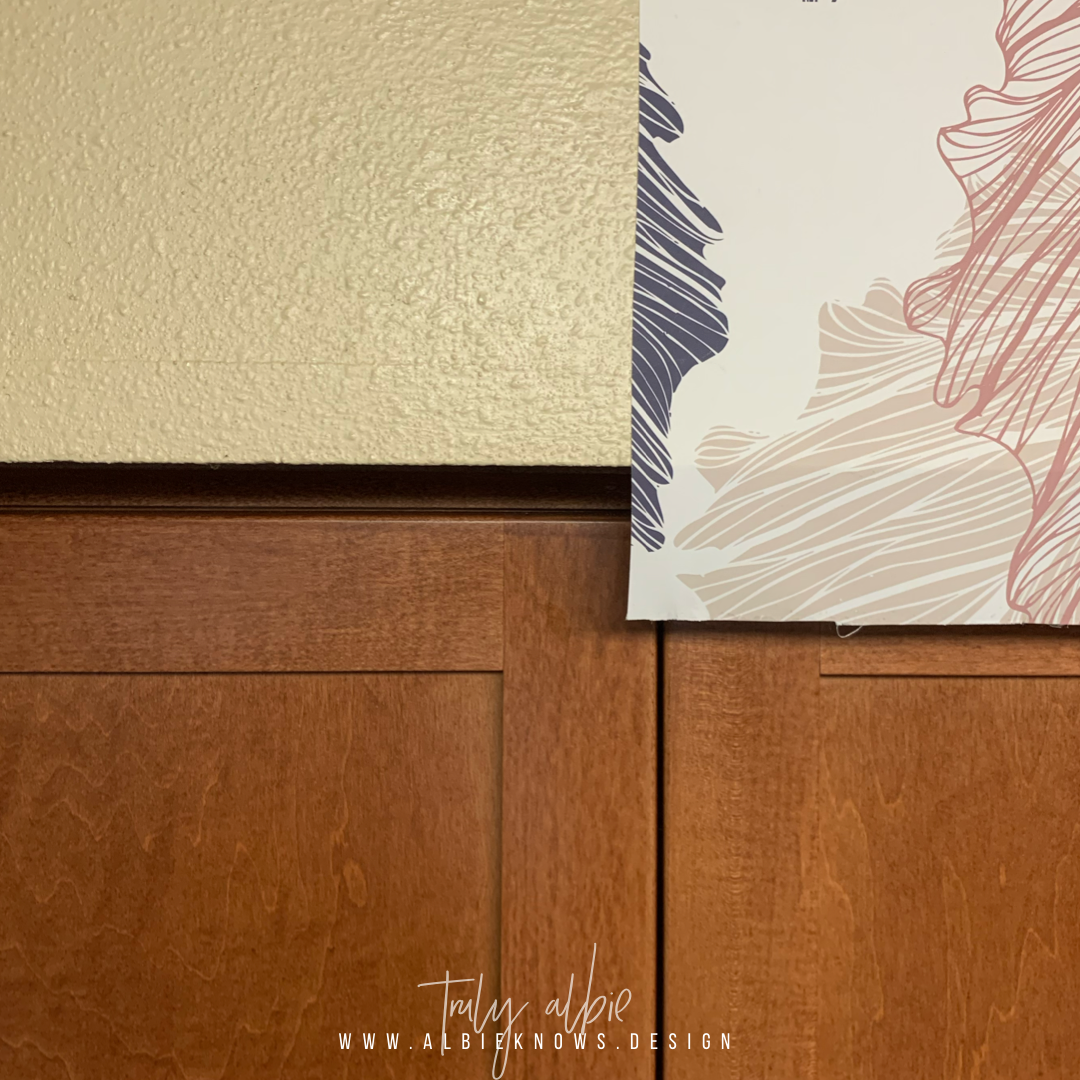 Milton & King is a family business that specializes in reinventing wallpaper and fabric. In addition to their traditional wallpaper offerings, I was stoked to discover that Milton & King also had a robust removable wallpaper offering, including many of he traditional designs that I love. I decided that in this small, dark corner of the condo, this would be the perfect time to go big & go bold! I browsed A LOT of designs, but most of which initially, were for the kitchen I wish I had. After some more deliberating, I narrowed it down to four designs that would elevate (and not compete with) the kitchen design.