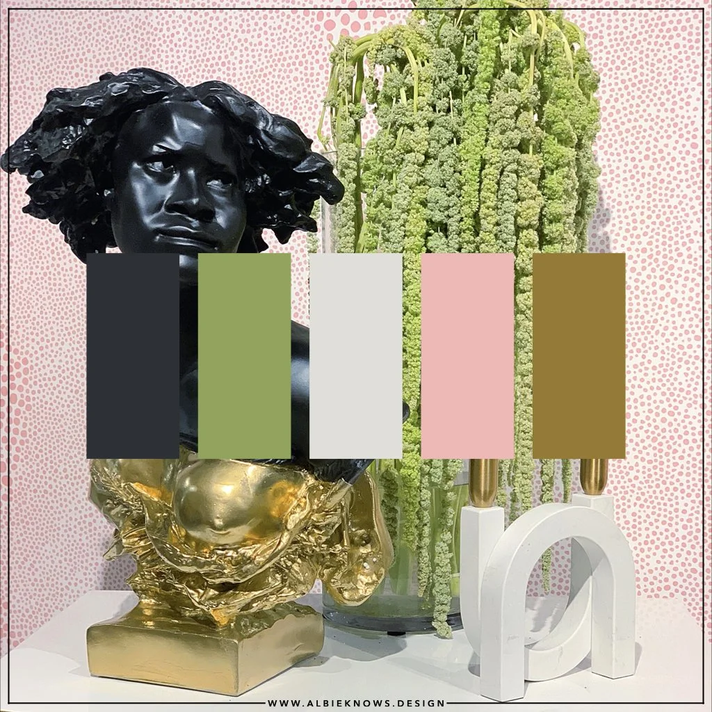 The inspiration image is one I'd capture while at High Point Market in 2019 - a vignette from Keia McSwain's Showhouse in a Showroom installation for Alden Parkes, featuring a bust custom painted by Danielle McKim.