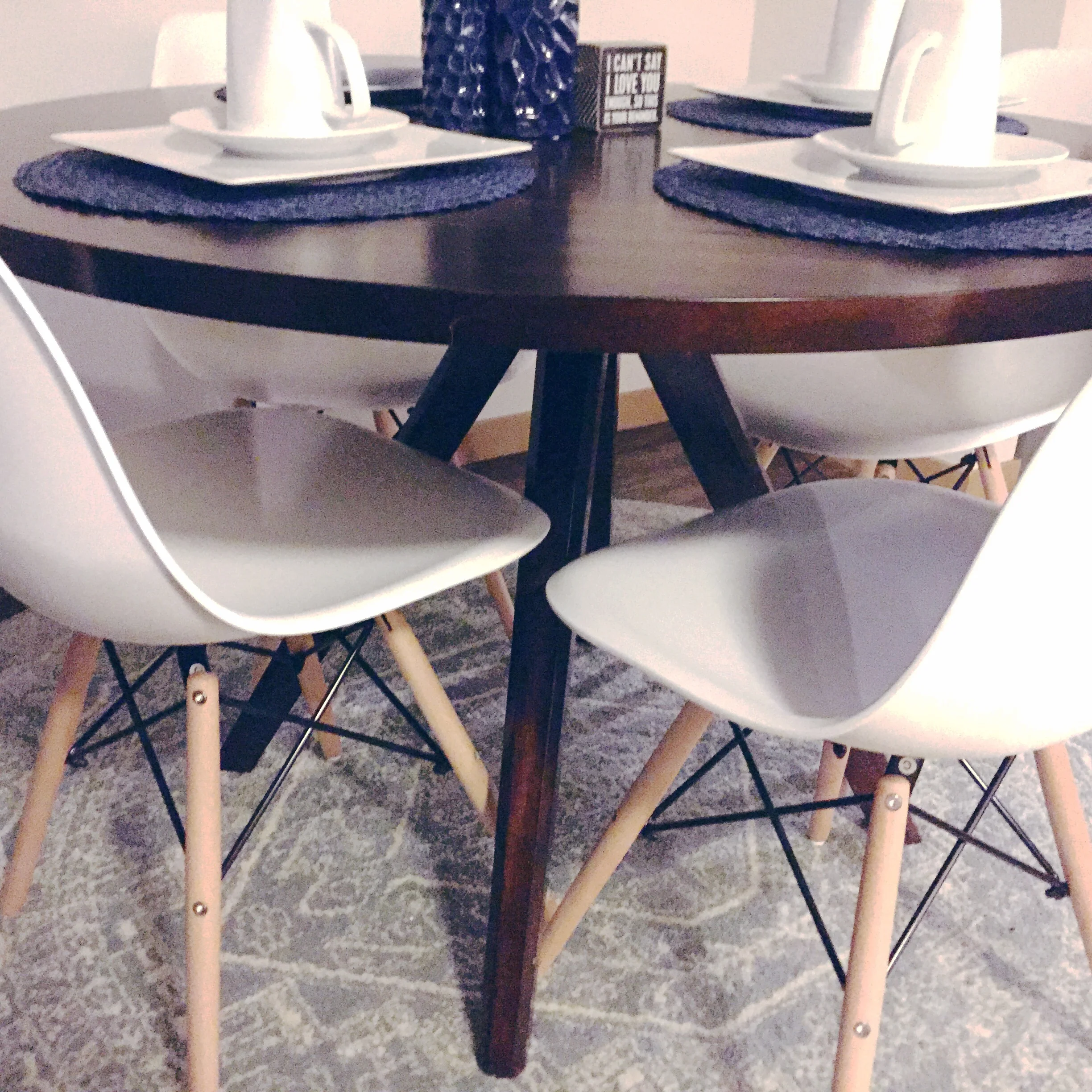 After browsing the Wayfair and Joss & Main sites, I came across one table that really caught my eye. I sent it to my husband & he immediately agreed that it was the one. It had the right look -- clean lines, simple design, but lots of personality -- but the price, was less than pleasant; so I did what I always do -- I threw it in all my carts because 9 times out of 10, if I find something on one retailer's site, I'm able to find it at another 2 to 3; and prayed for a price drop somewhere. Weeks went by, until I finally saw a drop the week of Black Friday! I checked all my carts to see if the same happened with my chairs & immediately ordered my "set".